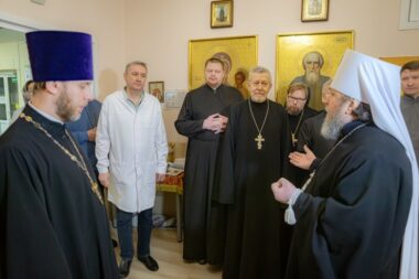 Также в дни святок архиерей посетил Республиканскую детскую клиническую больницу. Владыка совершил молебен в обустроенной молитвенной комнате и пообщался с персоналом медицинского учреждения. «В год здесь проходит до 22 тысяч пациентов только через стационар, и более 100 тысяч — через поликлинику. Сотрудников работает 860 человек, поэтому коллектив довольно большой и дружно работает с нашим детским населением, помогает им выздоравливать. Здесь находятся в основном родители. Иногда сотрудникам хочется побыть наедине с собой, хочется побыть наедине с Богом, выговориться в конце концов, поэтому у нас здесь проходят службы», — отметил телеканалу «Союз» главный врач РДКБ Павел Витальевич Пупков.