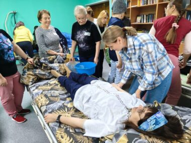 А затем на четыре дня к нам приехала Анастасия Старцева из Иркутска — опытная сестра милосердия с медицинским образованием. Всё, что мы изучали теоретически и видели на видео, она показала нам на практике, демонстрируя, как ухаживать за пациентами. И мы закрепили свои знания.