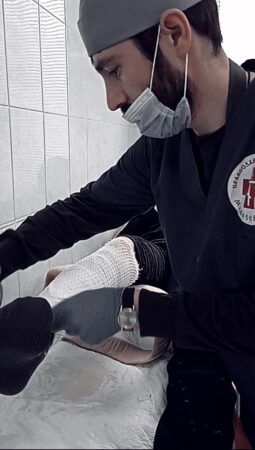 Максим Муратов делился своими впечатлениями от поездки: «Мы приходим в госпиталь в 8 утра, начинаем обход палат, смотрим за бойцами, как у них самочувствие и настроение. Если вновь прибывшие, то в первую очередь обращаем внимание на их катетеры и пакеты. Это, конечно, не самая приятная часть работы, но она очень важна. Мы ликвидируем последствия ночного сна, так сказать».
