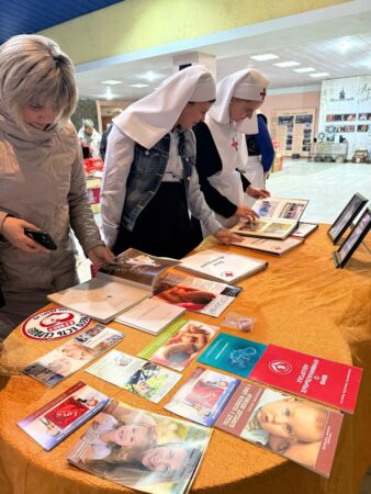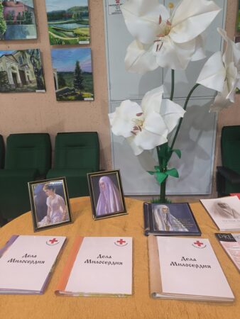 В фойе кинотеатра братья и сестры Елабужского Свято-Елисаветинского общества милосердия организовали выставку. Братья и сестры Елабужского Свято-Елисаветинского общества милосердия, старшая сестра милосердия Юлия Веселова, помогли прихожанам храмов города, а также преподавателям и учащимся средних образовательных учреждений ознакомиться с работой общества, просмотреть фотографии и прочитать просветительскую литературу.