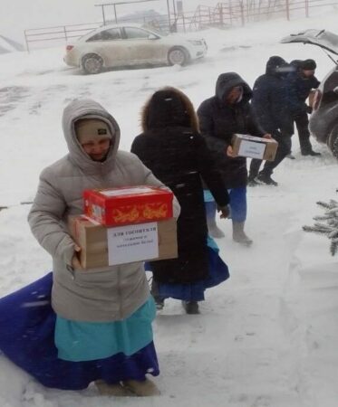 И вот наступил Новый год, а добровольцы продолжали своё дело милосердия. В рамках акции «Чудесное Рождество» организовали поездку. Условия были непростые: мороз, сильный ветер, глубокий снег… Казалось бы, пройти невозможно, но воля к победе помогла добраться до места назначения.
