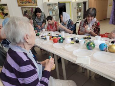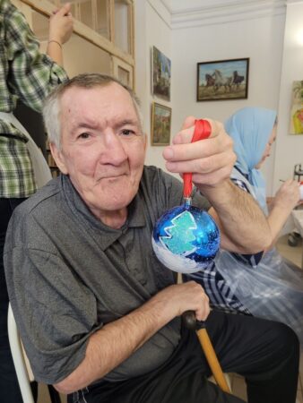 Всегда радостно видеть, как о постояльцах Обители Милосердия заботятся их друзья. В преддверии Нового года и Рождества Христова друг Обители Милосердия Надежда Фрис устроила масер-класс. Она принесла не только краски для творчества, но и атмосферу детства — запах хвои и звук снега под ногами. На мастер-классе бабушки и дедушки с радостью вспоминали, как вырезали снежинки и украшали елку. Их лица светились счастьем, ведь это был не просто урок рисования — это было лекарство для души.