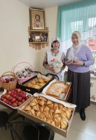 В Светлое Христово Воскресение Елабужское Свято-Елисаветинское общество сестер милосердия совершило несколько добрых дел, чтобы праздничная радость достигла тех, кто особенно нуждается в поддержке и внимании. Детские дома, школы-интернаты, социальные приюты и Дом Милосердия – везде, где живут или временно находятся дети и взрослые, сестры милосердия делились светом Воскресения Христова.
